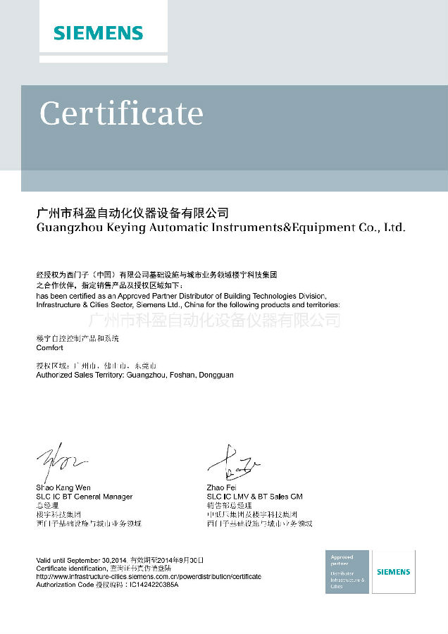 2014年西門子授權書