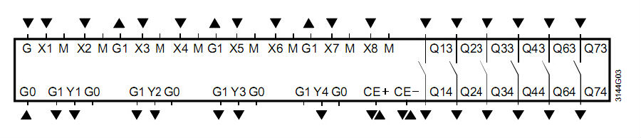 l 在擴(kuò)展模塊之間,或者擴(kuò)展模塊與控制器之間不需要接線。附裝模塊時(shí),自動(dòng)進(jìn)行電氣連接。如果不能并排安排擴(kuò)展模塊,第一個(gè)分離式模塊必連接到最前的模塊,個(gè)或者連接到使用RMZ790模塊接頭的控制器。在這種情況下,累計(jì)的電纜長度不得超過10米。