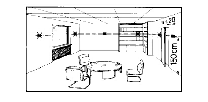 房間溫度控制應(yīng)安裝在避免受到太陽(yáng)輻射或其他冷熱源影響的位置。 安裝高度距地面約 1.5 米。