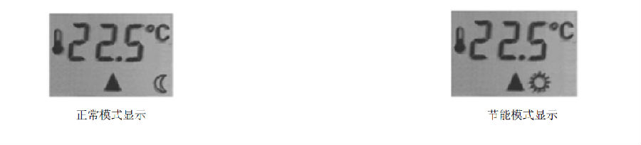 節(jié)能模式下,顯示屏顯示符號“ ”。按,“+”和“-”鍵,可調(diào)節(jié)溫度設(shè)定值。當(dāng)節(jié)能溫度設(shè)定值設(shè)置為“0”時,溫控器即被關(guān)閉,也就是說,這時RDD10…在節(jié)能模式下不工作。在這種情況下,符號“”不顯示。